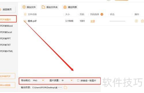 默认支持PDF转图片,直接拖拽文件至页面,点击导出格式,可设置图片质量及是否合并为单张图片。