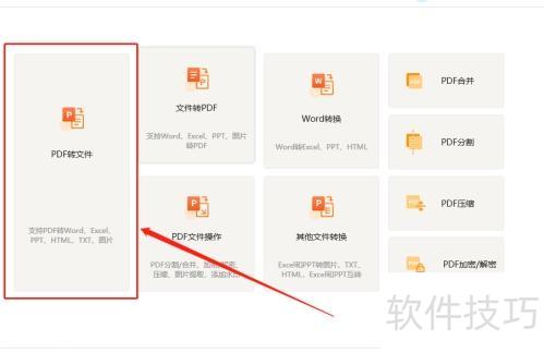启动金舟PDF转换器,选择PDF转文件功能即可。