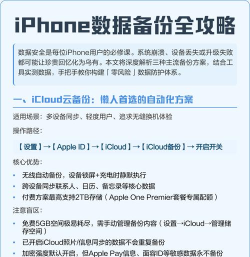 iCloud备份是iPhone数据备份的常用方式,通过开启iCloud备份功能,可自动保存照片、通讯录等数据,恢复时直接登录iCloud即可。