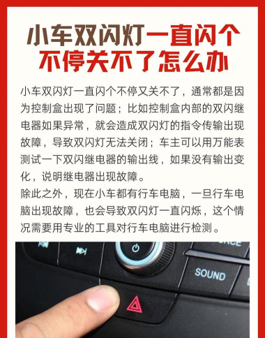 双闪灯持续亮可能由防盗系统故障、开关损坏或电路问题引起,需检查相关部件以解决。
