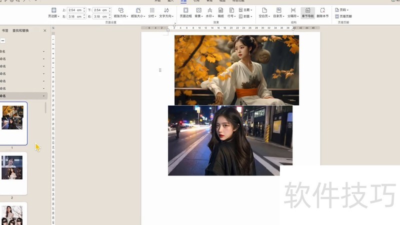 将光标置于两页间,出现双箭头后单击左键,即可插入分节符。