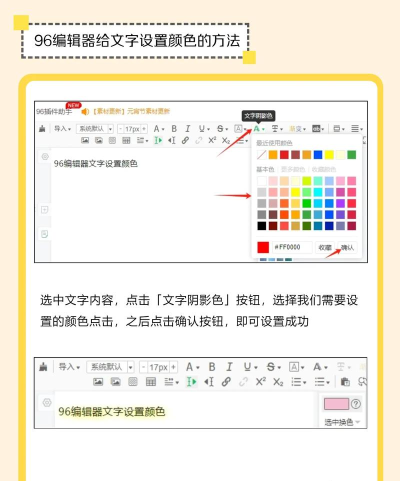 在Word中更改字体颜色,选中文本后在“开始”选项卡的“字体颜色”框选择颜色或“更多颜色”自定义。在PPT、网页或设计软件中,通过样式设置或颜色工具调整字体颜色。