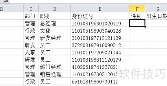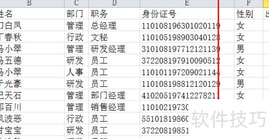 在Excel中新建一列,自上而下依次输入18位身份证号码,统一放在同一列便于后续使用公式批量提取性别信息。