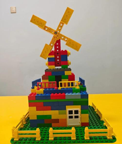 在马达上安装个风车,按压开关风车开始转动