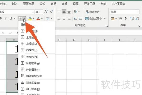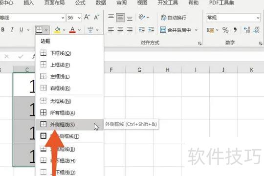 点击菜单中的外侧框线功能按钮即可完成操作。