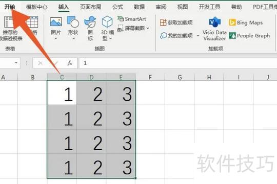 进入Excel界面后,选中目标单元格区域,点击顶部的开始选项卡进行设置。