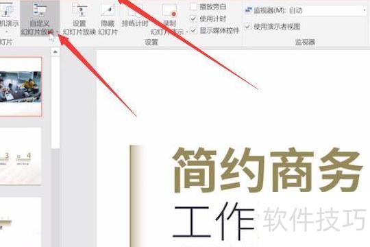 打开幻灯片文件,点击放映选项,选择自定义放映进行设置。