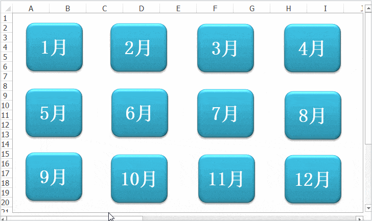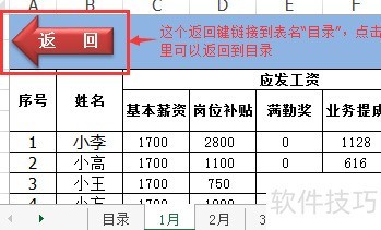 第四步:参照步骤二和三,为1至12月各工作表添加返回图标,并统一链接至目录表。