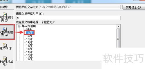 在弹出的对话框中,点击,右侧会列出所有工作表名称。选择目标工作表1月,然后点击。此时,1月的图形图标便成功链接至名为1月的工作表,点击图标即可快速跳转。