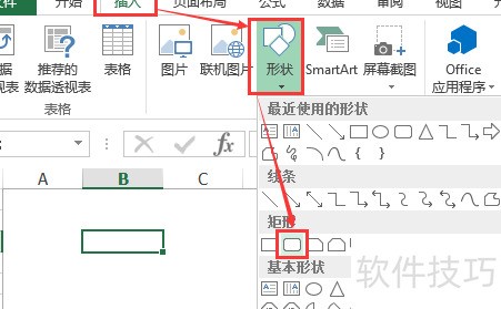 在目录工作表中,点击插入选择形状,本例选用圆角矩形,也可根据喜好自选其他图形。