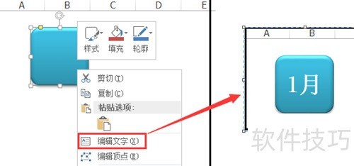 选中插入的图形,右键点击,输入如1月作为表名,并调整字体的位置、大小和颜色。