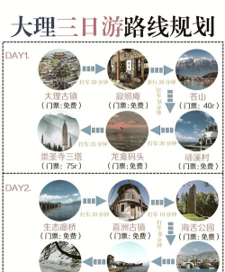 大理旅游推荐行程包括大理古城漫步、洱海生态廊道骑行、苍山徒步等,适合规划深度文化体验与自然风光结合的行程。