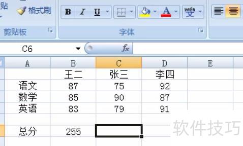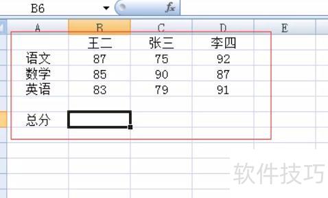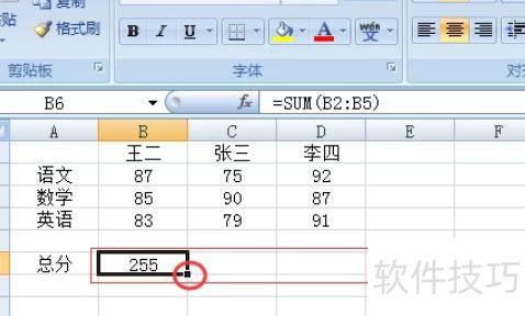 选中总分右侧的单元格,所示。