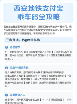 可在支付宝领取“西安地铁乘车码”扫码乘车,无需排队购票。近距离出行可选择共享单车,灵活方便;打车务必选择正规出租车或大型网约车平台,避免乘坐...
