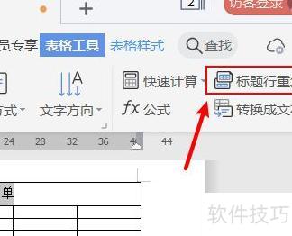 在打开的表格工具窗口中,点击标题行重复按钮,所示。
