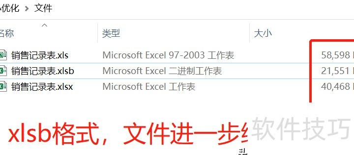 同一文件在XLSB格式下体积仅为XLS的三分之一、XLSX的一半。