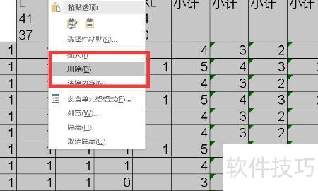 第五步,右键点击鼠标,在弹出菜单中选择删除,即可清除表格右侧多余的空白列。