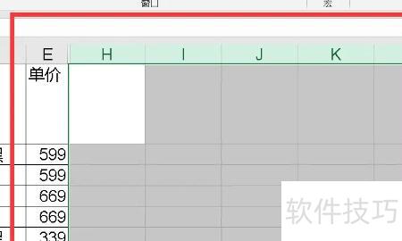 第四步,选中表格最右侧一列的空白单元格,按下键,即可批量选中数据区域右侧所有空白列的单元格。