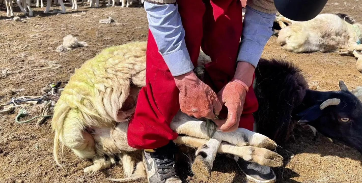 他的拿手绝活是为不同品种的羊褪去厚厚的羊毛!不用捆绳,不用帮忙,灵巧地勾住羊腿,将安静或躁动的羊放倒,手持一把电动卷毛机,三下五除二就能褪下一整块羊毛毯子。