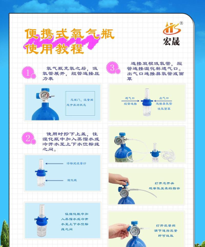 便携式氧气瓶使用方法包括面罩式和鼻氧管式,操作时需注意按压时间与深呼吸配合,减少氧气浪费。