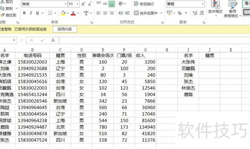 所示,若要查询I列中歌手的籍贯,需在A:G区域查找。使用公式=VLOOKUP(I:I,A:G,3,0),其中I列为查询值,A:G为查找范围,籍贯位于该范围的第3列。