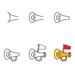 小号简笔画可通过基本几何图形组合,如圆形和长条形,逐步勾勒出轮廓,再添加细节如按键和号口,使画面生动。