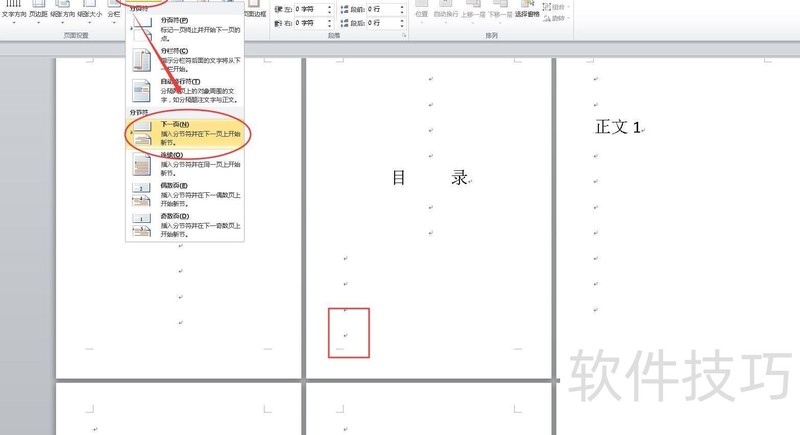 将光标移至目标页前一页的末尾,即第2页最后一个字之后,点击页面布局菜单,进入分隔符选项,选择分节符中的下一页,操作所示。