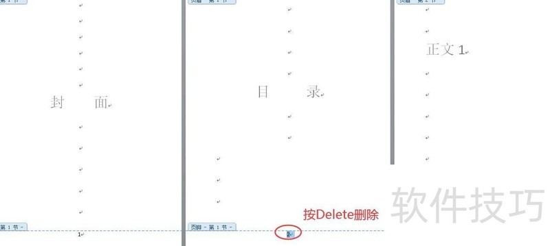 第4步:选中第2页页码,按Delete键删除,双击页面空白处退出编辑状态。