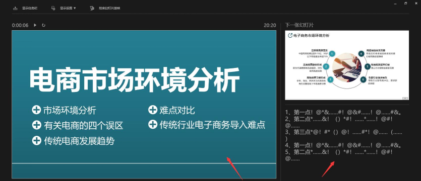 此外,还有一种更为便捷的操作方式:在进入PPT后,直接点击顶部功能区的选项,在下拉菜单中选择显示演讲者视图。启用该功能后,系统将自动进入双屏显示模式。若需添加备注内容,可在每页幻灯片下方的备注区域输入相关信息。这些备注仅对演讲者可见,可用于记录讲解要点、过渡语句或注意事项,便于现场发挥。