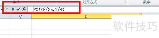 若需计算36的四次方根,可在Number栏输入36,Power栏输入1/4,单元格将显示为POWER(36,1/4),点击确定后即可得出结果。