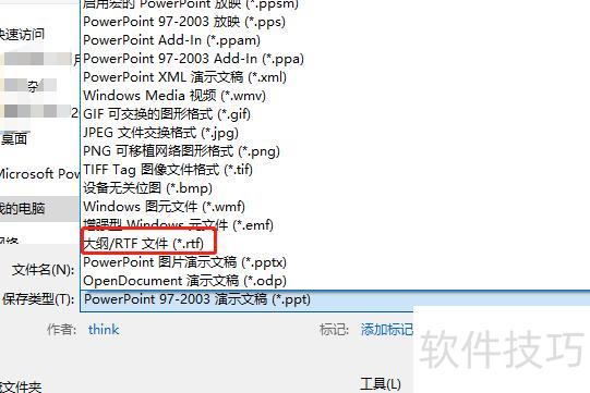 弹出另存为窗口后,选择保存类型为大纲/RTF文件,然后点击保存按钮即可。
