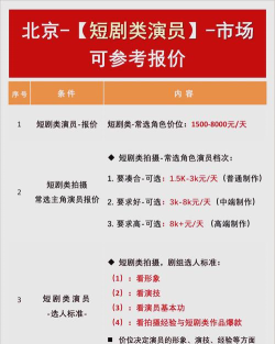 群演的工作并不容易,通常片酬在80元/9小时,拍摄超时则有每小时10元的加成。群演的角色虽然种类繁多——例如宾客、保镖、医生、黑帮等,但通常是无台词的角色,收入也相对较低。小江就曾表示,群演工作虽然辛苦,但能有戏演就算幸运了。相比之下,小前景和大前景演员的收入会有所提升,前者每天大约150元到250元,而特约演员的片酬则在300元到1000元之间,具体金额取决于演员的演技和经验。 进入短剧行业的顶...