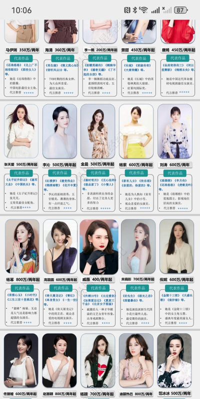 演员通过商业代言和直播带货获得额外收入,闫学晶的视频广告报价可达12万元/60秒以上,展现商业影响力。