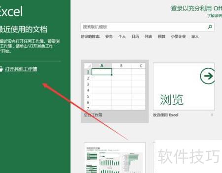 双击桌面上的Excel 2016图标启动程序,进入主界面后点击打开其他工作簿,选择需要编辑的文件并加载,即可开始操作。所示。