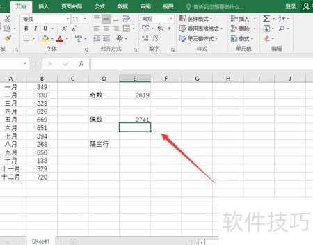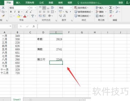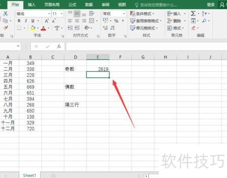输入公式后,即可求得奇数月的总和,所示。