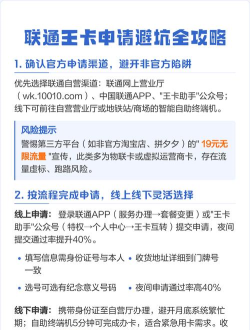 办理流程全攻略:哪里办最靠谱? 官方申请渠道(防骗重点!) : 1. 联通:微信公众号“好卡直通车”或联通APP搜索“王卡系列”。 2. 移动:移动营业厅APP或线下营业厅(部分地区支持线上)。 3. 电信:电信官网或“电信星卡”专属页面。