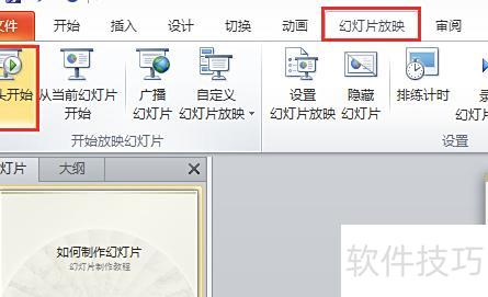 最后点击幻灯片放映中的从头开始,即可预览已完成的幻灯片。
