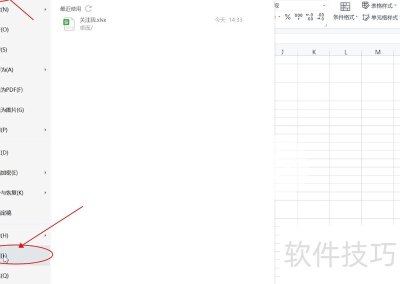 点击左上角文件,选择下拉菜单中的齿轮图标,参照箭头与红圈所示位置,即可设置Excel表格自动保存功能。