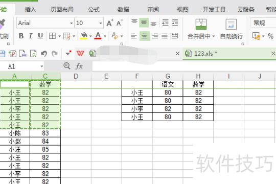 先选中需粘贴的数据,再按下Alt+;键,即可选中表格中的这两列信息。