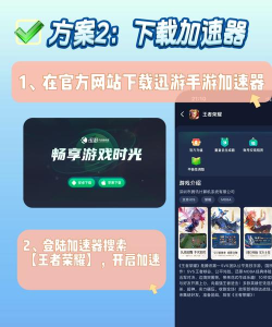 迅游加速器教程包括下载安装、搜索游戏名称、一键加速及兑换加速时长,确保王者荣耀流畅运行,解决外服锁区问题。