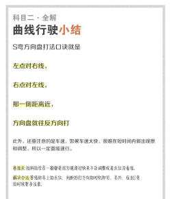 弯道驾驶应遵循“外—内—外”路线,保持车速稳定,避免急打方向。转弯时身体向内倾斜,控制方向盘留半圈,确保安全。注意观察车窗下沿与边线距离,适时打方向。