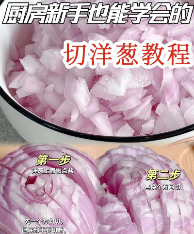 洋葱切法有多种技巧,如快速切丝、切丁等,部分方法可减少流泪,如在流水中切或冷藏后再切。