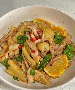 柠檬鸡以酸甜开胃为特色,口感清爽,肉质有嚼劲,尤其适合夏季食用,深受家庭喜爱。