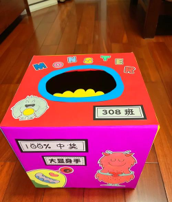 抽奖盒手工制作涉及使用纸板、彩纸等材料,通过折叠、印刷、裱纸等工艺完成,部分设计包含滑轨结构以增加趣味性。