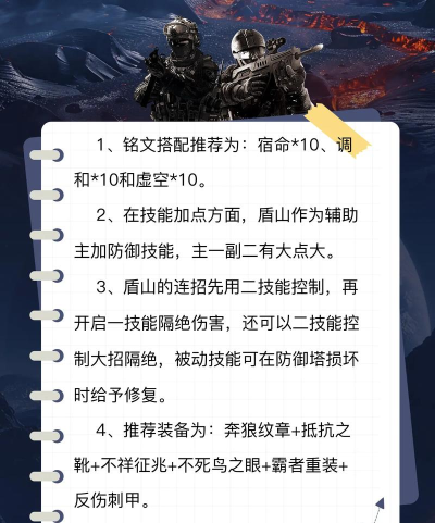 盾山出装推荐包括疾步之靴、霸者重铠、不祥征兆等,铭文搭配宿命、虚空、狩猎等,提升坦度和机动性,适应不同阶段需求。