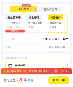 闲鱼寄件费用受快递公司影响较大,部分快递驿站寄件利润压缩,派送费从1.5元降至0.3元甚至更低,导致末端成本压力增加。
