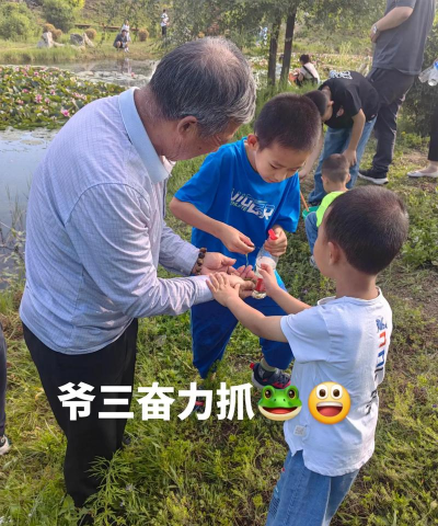 外公眼疾手快,一把抓住了这只青蛙的腰,并用一根红绳将它的腰扎好,放进桶里. 换外公钓鱼,我看青蛙了.青蛙一直想跳出来,于是我捡了根木棒,每当青蛙半个身子探出来时,我就用木捧将它挑进桶里.于是,我和青蛙开始“斗智斗勇"