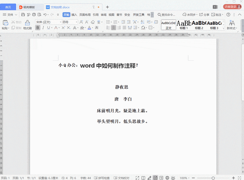 如何制作Word文档注释?小Q来为你演示操作步骤。