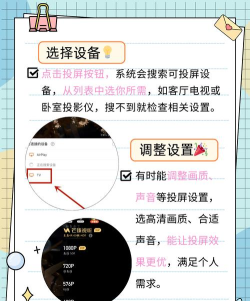 芒果TV投屏需确保手机与电视在同一局域网,部分电视可能需安装额外投屏功能应用或使用云投屏技术。