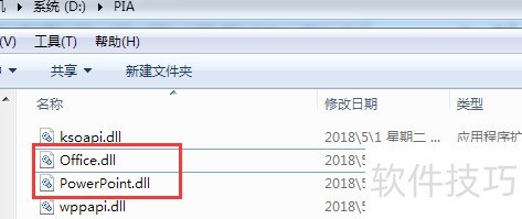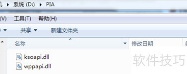 打开WPS安装目录,找到ksoapi.dll和wppapi.dll文件,将其复制到D盘新建的PIA文件夹中,便于后续使用。